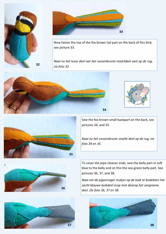 Ook dit vogeltje is alleen verkrijgbaar als PDF patroon, een heerlijk klein project. Het basis lijfje is simpel en met behulp van de vele stap voor stap foto’s gaat het ook de beginnende naaister zeker lukken.