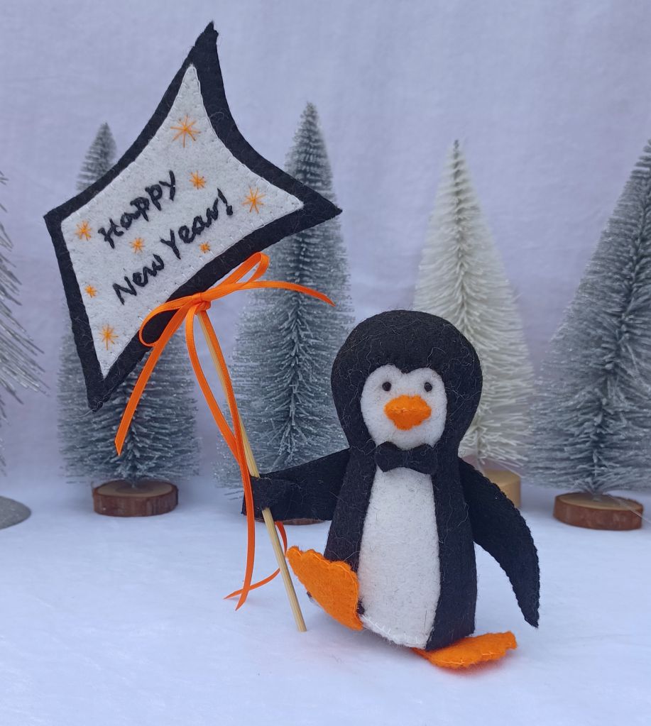 Dus kom langs en begin het jaar goed en zet dit vrolijke vriendje op je Wintertafel neer. Het patroon is voorzien van vele stap voor stap foto’s zodat je het eenvoudig kunt maken. Wat wit, zwart en oranje vilt verzamelen, vulwol en garen erbij, lintjes, stokjes en een stukje karton en lekker aan de slag.